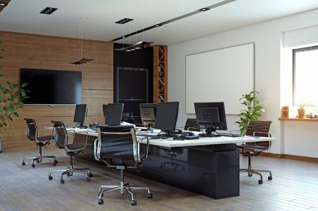 Boost productivity with sophisticated office interiors that balance style and practicality.